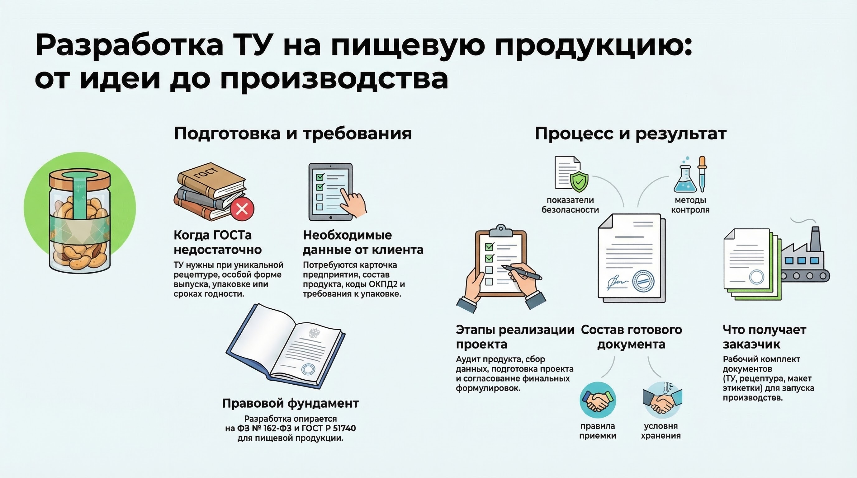 Разработка ТУ на пищевую продукцию идет по понятному рабочему сценарию: